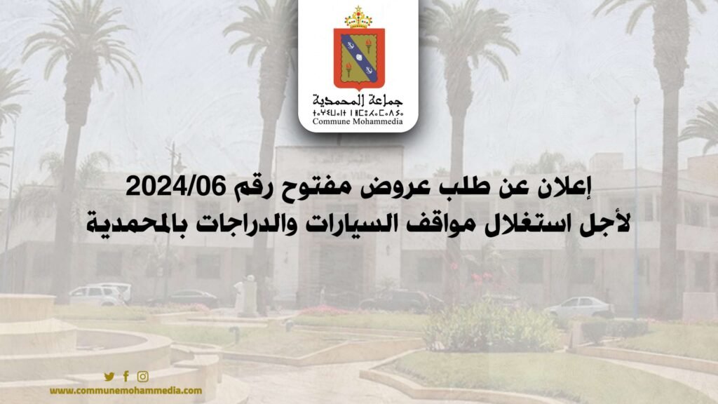 إعلان عن طلب عروض مفتوح رقم 06/2024 لأجل استغلال مواقف السيارات والدراجات بالمحمدية