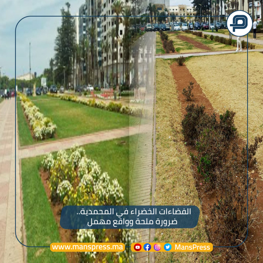 تعتبر المساحات الخضراء أحد العناصر الأساسية التي تضفي جمالية على المدن وتحسن من جودة الحياة فيها، غير أن مدينة المحمدية تعاني من نقص حاد في هذه المساحات، مما ينعكس سلبًا على سكانها الذين يجدون أنفسهم محرومين من أماكن التنزه والاسترخاء والترفيه .