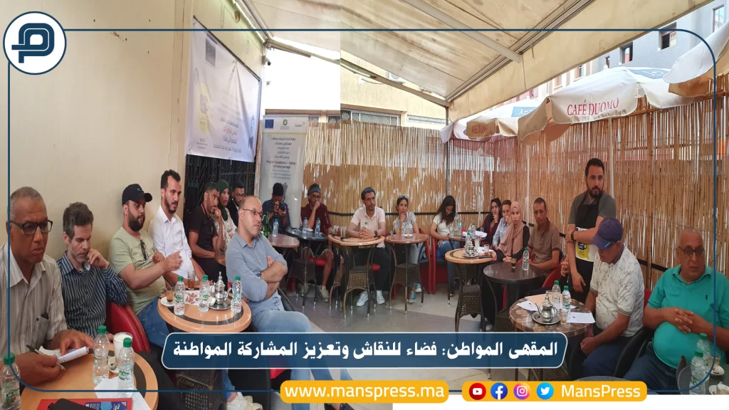 شهدت مدينة المحمدية يوم الثلاثاء 13 يونيو 2023، تنظيم المقهى المواطن تحت عنوان ” المحمدية اللي بغينا !؟ ”، والذي يهدف الى خلق فضاءات للنقاش بين المواطنات والمواطنين وتعزيز المشاركة المواطنة بالمدينة، والتي شارك فيها عدد من الفعاليات الجمعوية والمهتمة بالشأن المحلي والتنمية. وتعتبر تجربة المقهى المواطن، تجربة جديدة تسعى من خلالها شبكة الفضاء الحر