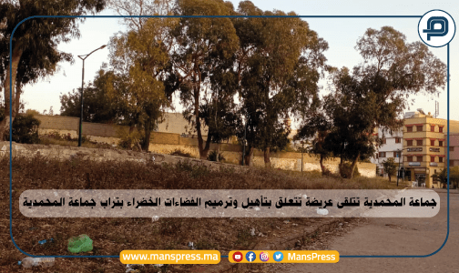 توصلت جماعة المحمدية بعريضة بتاريخ 15 نونبر 2023 الماضي، والتي تتعلق بتأهيل وترميم الفضاءات الخضراء بتراب جماعة المحمدية، خصوصا بعد الزضعية الكارثية التي أصبحت تعيشها.
