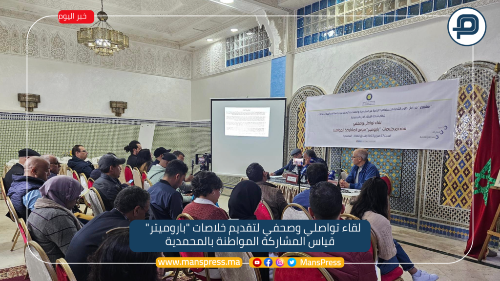 عقدت شبكة الفضاء الحر بالمحمدية، لقاء تواصليا يومه السبت 27 يناير 2024 بفندق فضالة -المحمدية لتقديم خلاصات ” باروميتر” قياس المشاركة المواطنة، والذي يأتي في إطار مشروع: من أجل تطوير التنمية الديمقراطية الترابية عبر المشاركة والمساءلة الإجتماعية بجهة الدار البيضاء-سطات. وفي هذا السياق أنجزت شبكة الفضاء الحر بالمحمدية، دراسة من أجل قياس درجة المشاركة في