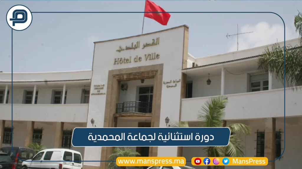 يعقد مجلس جماعة المحمدية دورة استثنائية يوم الاربعاء 14 يونيو 2023، للدراسة والتصويت على عدة نقط انطلاقا من التاسعة صباحا بممقر جماعة المحمدية.